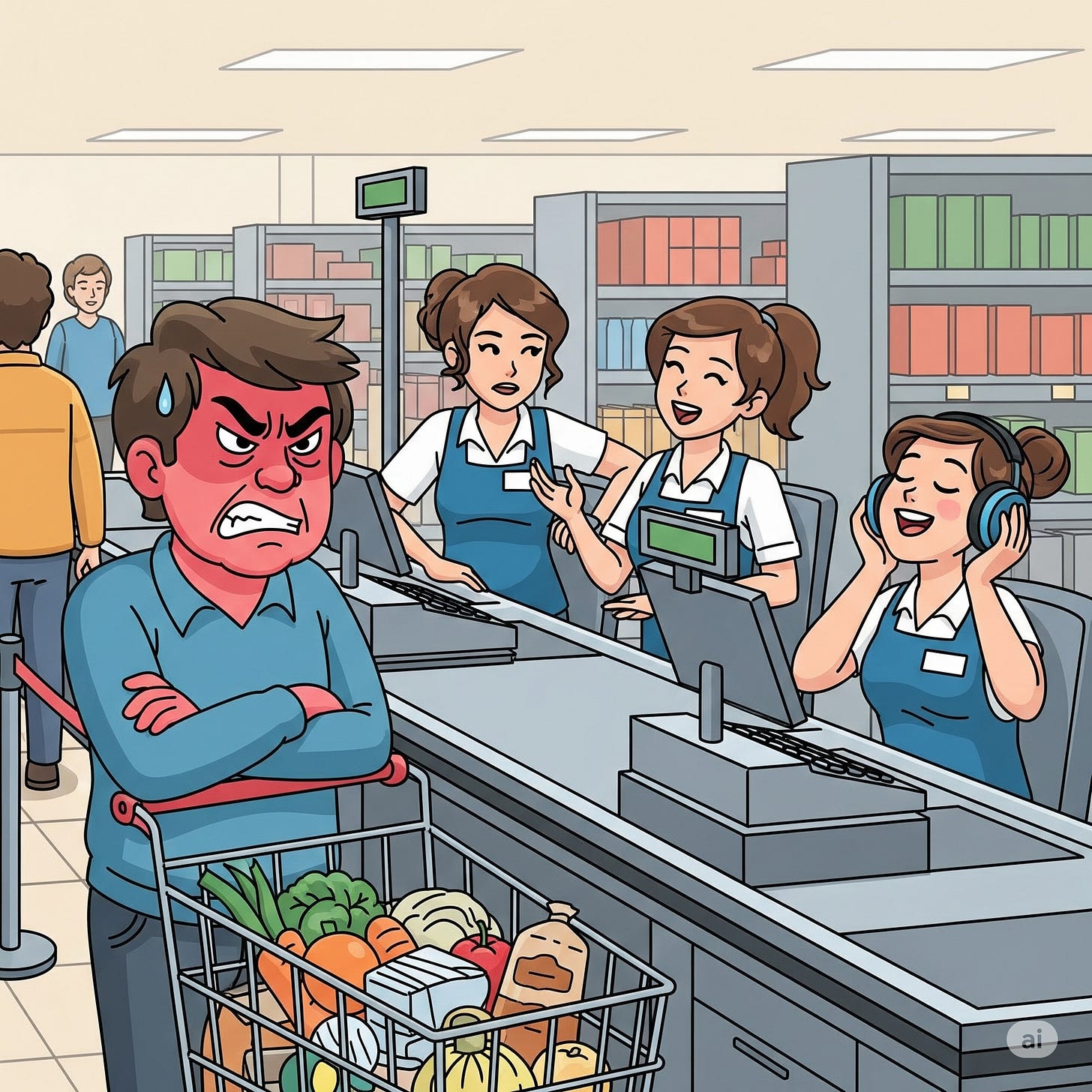 Grocery stores are poorly stocked, and the workers (who are nowhere to be seen) seem as perplexed as you are about where the Dijon mustard went, yet you sense no curiosity on their part about when the next shipment will come in and no urgency about trying to help you figure out what to do instead (“Would yellow mustard work instead?” or “Normally the Harris Teeter has this stuff” are both acceptable and not-difficult-to-manage responses to this inconvenience). Once you’ve collected all of your goods, you end up in a long line of similarly discontented customers—so long that you contemplate putting the stuff back in a convenient location and leaving the store. If you stay in line, you wish you hadn’t, or you wish you had chosen a less-busy time to shop, because the line moves at a snail’s pace. Once you get closer to the front of the line, you realize the culprit: the cashiers, who are themselves moving at a snail’s pace. Some of them are talking to each other as if there aren’t 30 people in line waiting for the cashiers to get their shit together so they can get on with their lives. Even if they aren’t rudely ignoring customers, they are rudely operating without any sense of urgency at all, scanning barcodes and folding clothes and removing security tags and placing items into bags as if they’d be fired for going faster. They don’t try to engage you in conversation, which is fine, considering conversations with cashiers are always awkward, but neither do they treat you with any respect other than the bare minimum. You leave grumpily 15 minutes after you got in line to check out, only to discover when you get home that the security tag on your bathing suit wasn’t removed (but the alarm didn’t go off when you left the store, leaving you to speculate about how easy it would be to just steal all the things you paid for).